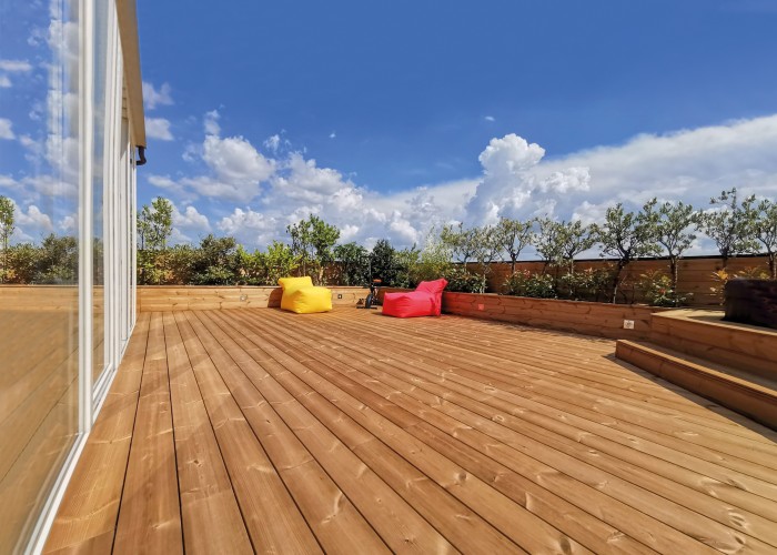 - Holzarten: nordische Kiefer, Douglasie, kanadische Lärche, Thermokiefer
