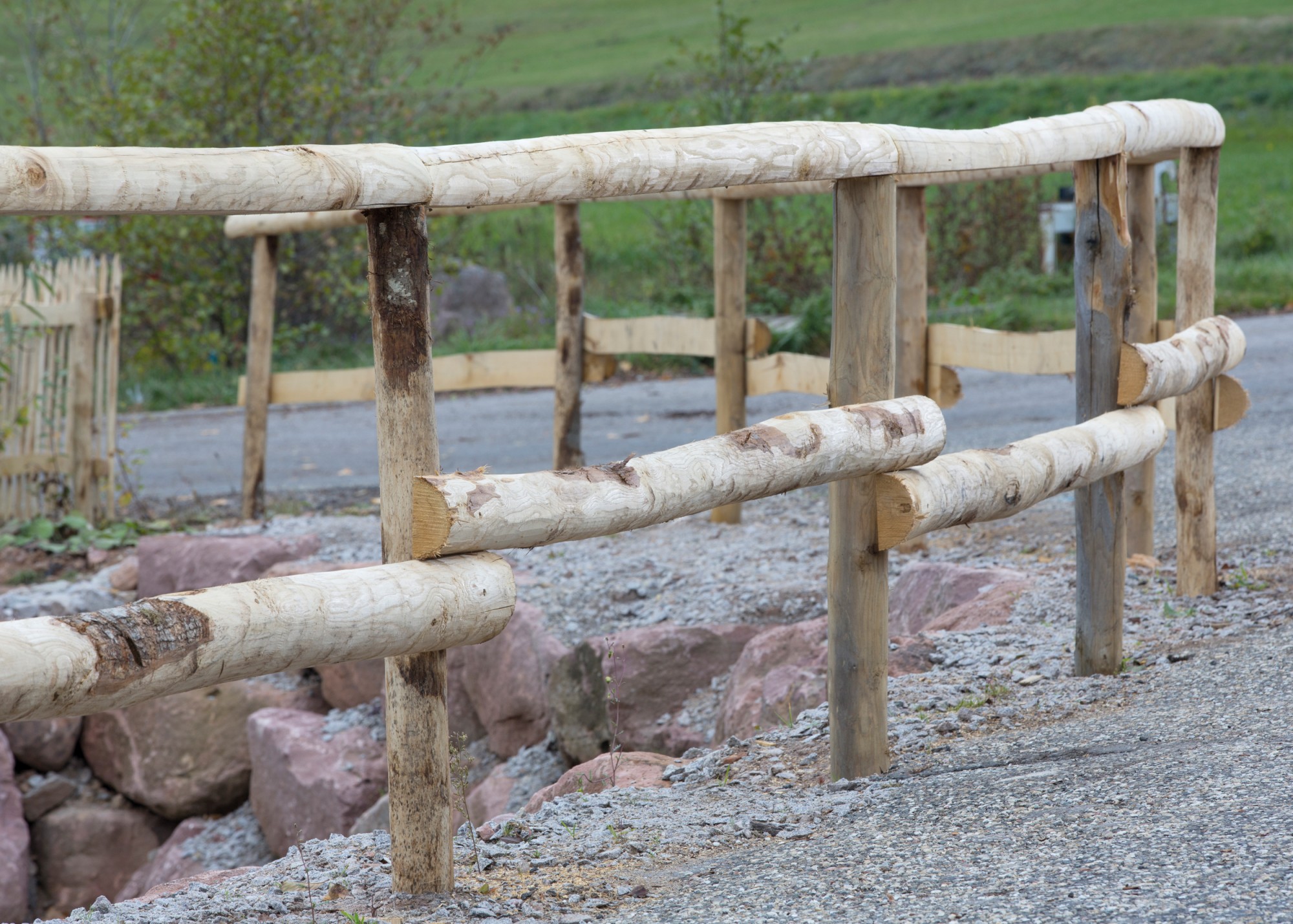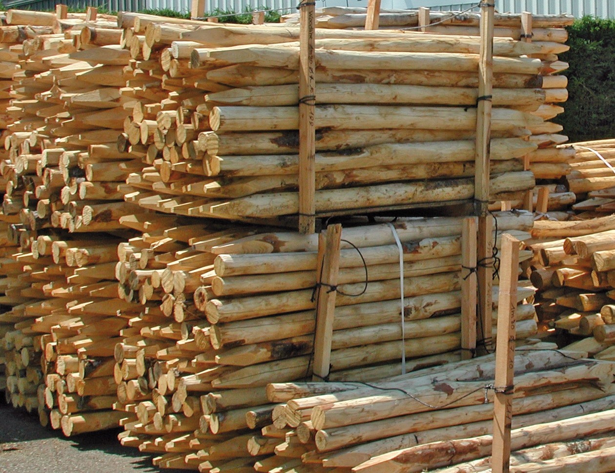 - Zaunlatten mit Halbhölzern, Rundhölzern und Pfählen